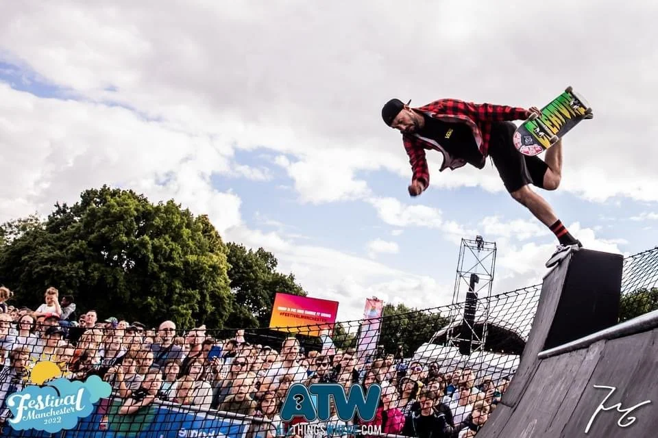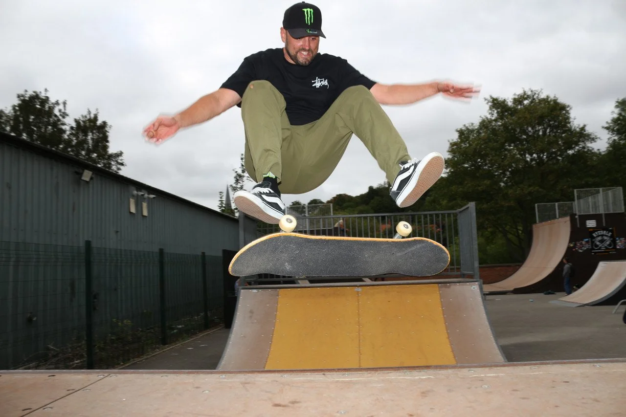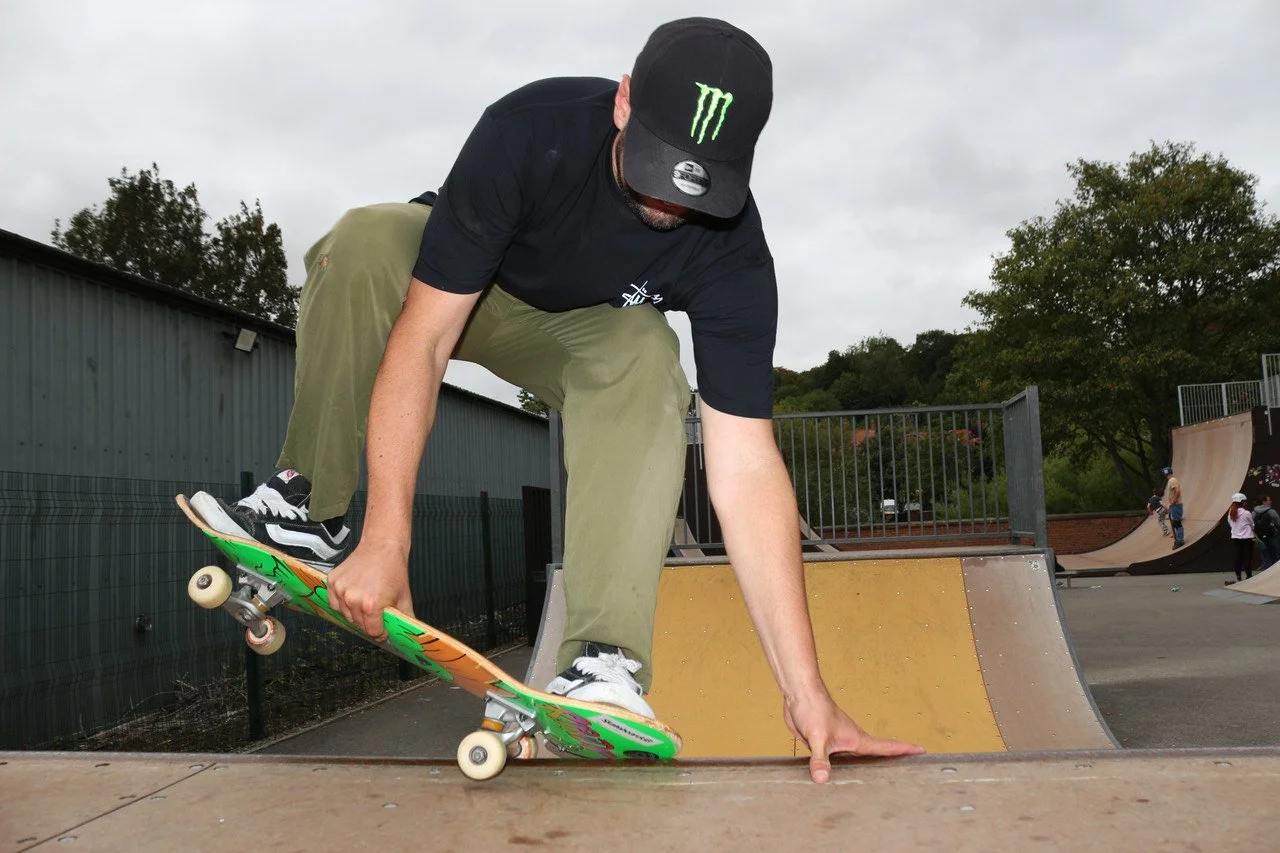 With over 20 years of skateboarding experience, Ryan has travelled, competed, and represented well-known brands across the UK skate scene. Starting at just 14 years old, Ryan quickly built a reputation as a versatile skater, excelling in vert, mini-ramp, and street skating. His first sponsor was the legendary Popcorn Skate Shop in Northallerton, and since then he has gone on to skate for and represent multiple brands, events, and competitions.